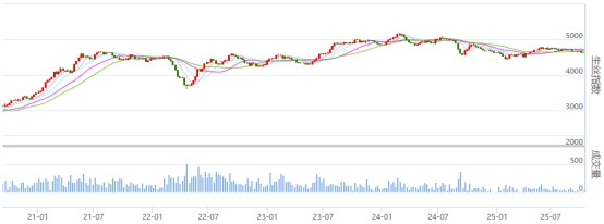 從均線系統(tǒng)看,當(dāng)前4633.95點(diǎn)貼近5日均線4633.84,低于中長期均線,對行情仍形成壓制。