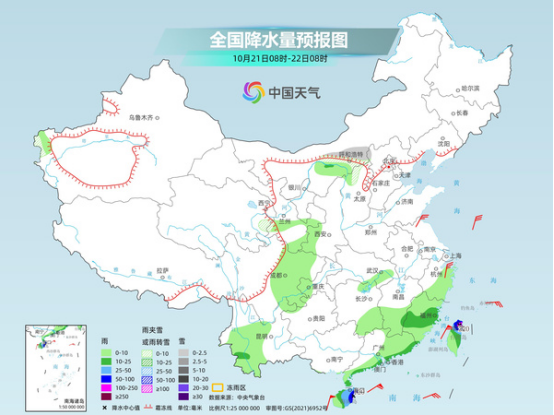 今明天,華西秋雨區(qū)降雨仍頻繁,不少地方隨著氣溫下降,雨雪相態(tài)將發(fā)生轉(zhuǎn)換,公眾外出需小心慢行,注意交通安全。臺風“風神”進入南海后將遭遇冷空氣,導(dǎo)致其路徑轉(zhuǎn)向偏南,登陸我國的可能性大大降低,且臺風強度也會受到冷空氣破壞,但冷空氣和臺風“風神”結(jié)合會給我國東部及南部海域帶來長時間的大風天氣,將持續(xù)到24日,相關(guān)海域作業(yè)平臺以及往來船舶要做好防御大風的準備。