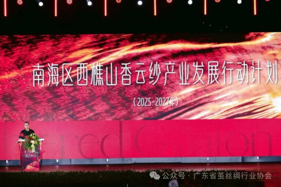 會上發(fā)布了《南海區(qū)西樵山香云紗產(chǎn)業(yè)發(fā)展行動計劃(2025-2027年)》,三年規(guī)劃立足南海千萬薯茛、千里河泥、千畝曬場獨特香云紗資源稟賦,構(gòu)建"3+3+3"產(chǎn)業(yè)發(fā)展工作體系,推動南海區(qū)力爭到2027年底,實現(xiàn)西樵山香云紗產(chǎn)業(yè)規(guī)模顯著提升,引育不少于25家品牌企業(yè),香云紗相關(guān)商品交易額不少于30億元,打造不少于5個產(chǎn)業(yè)特色園區(qū),形成具有行業(yè)影響力的香云紗產(chǎn)業(yè)集聚區(qū)。西樵山千畝野生薯莨保育基地啟用,全區(qū)統(tǒng)籌西樵、丹灶、九江3鎮(zhèn)資源,梳理出約2100畝曬莨地塊,到2027年可供曬莨土地面積達(dá)5000畝?!懊駱讽懺菩妗蔽穆庙椖繂?,以香云紗文化為主題打造沉浸式文旅綜合體的文化消費新場景,多個簽約板塊,打通覆蓋香云紗發(fā)展全產(chǎn)業(yè)鏈,同時還發(fā)布了《西樵山香云紗起源藍(lán)皮書》,香云紗主理人工作室入駐,非遺傳播大使授牌,最后樵山聽云、萬象有衣、匠曼延、汝良等品牌聯(lián)合的時尚大秀,以西樵山自然景觀為背景,將大會推向最高潮。