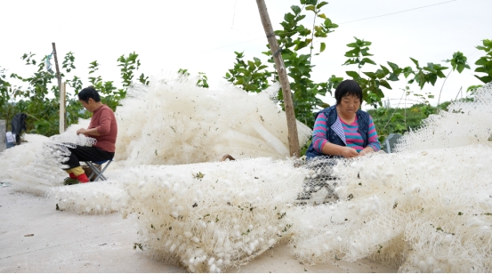 走進蠶室,一片白花花的蠶繭映入眼簾,個個飽滿厚實,密密匝匝地結(jié)滿了蠶蔟。十多名工人正有條不紊地將成熟的蠶繭輕輕摘下,并剔除次品與壞繭。蠶桑產(chǎn)業(yè)的發(fā)展,不僅盤活了土地資源,也為社區(qū)和周邊群眾提供了在家門口就業(yè)的機會,實現(xiàn)“顧家、增收兩不誤”。