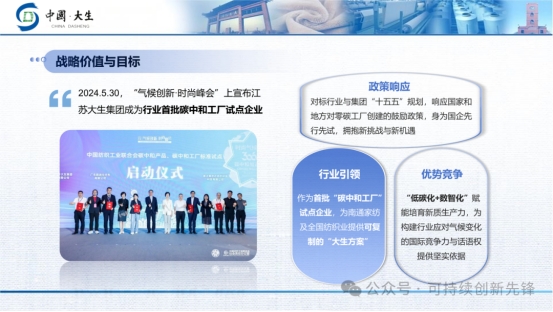 同日,江蘇大生集團(tuán)同步舉辦高質(zhì)量發(fā)展座談會,由大生集團(tuán)副總經(jīng)理趙志華、中國紡聯(lián)社會責(zé)任辦公室副主任胡柯華共同主持,會議聚焦碳中和工廠運營與企業(yè)長遠(yuǎn)發(fā)展,發(fā)布關(guān)鍵戰(zhàn)略文件并開展行業(yè)研討。