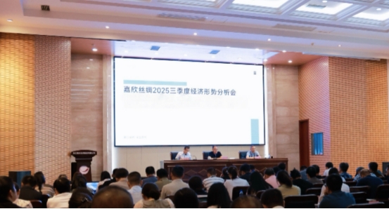 10月17日下午,浙江嘉欣絲綢集團(tuán)2025年第三季度經(jīng)濟(jì)形勢(shì)分析會(huì)在嘉欣絲綢廣場(chǎng)順利召開(kāi)。會(huì)議全面總結(jié)分析了集團(tuán)前三季度經(jīng)濟(jì)運(yùn)行情況,研判當(dāng)前形勢(shì),部署下一階段重點(diǎn)工作,為沖刺全年目標(biāo)、圓滿收官“第九輪發(fā)展規(guī)劃”匯聚合力,為全面開(kāi)啟“第十輪發(fā)展規(guī)劃”凝聚共識(shí)。