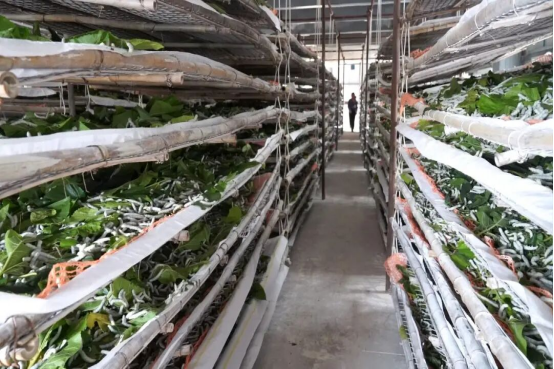 永仁縣通過(guò)推行“小蠶共育+大蠶分戶(hù)飼養(yǎng)”模式,定期組織技術(shù)培訓(xùn),推動(dòng)農(nóng)技人員下沉到村、指導(dǎo)到戶(hù),確保蠶桑產(chǎn)業(yè)科學(xué)化、規(guī)范化發(fā)展。目前,像姜明這樣的專(zhuān)業(yè)養(yǎng)蠶戶(hù),在永仁縣有1462戶(hù),桑園面積發(fā)展到了2萬(wàn)多畝,每年能生產(chǎn)蠶繭1400噸,產(chǎn)值8000萬(wàn)元以上。除了培育養(yǎng)蠶專(zhuān)業(yè)戶(hù),永仁縣還著力打造種桑養(yǎng)蠶專(zhuān)業(yè)村,村集體投入資金建設(shè)標(biāo)準(zhǔn)化桑園、大蠶房,再以出租的方式交由蠶農(nóng)管理,讓蠶桑產(chǎn)業(yè)成為壯大村級(jí)集體經(jīng)濟(jì)的有力引擎。