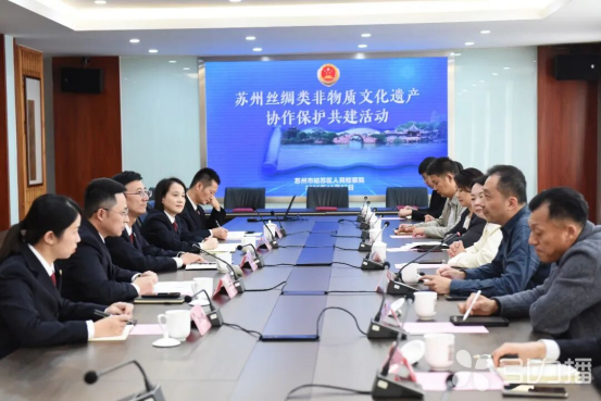 10月22日,蘇州絲綢類非物質(zhì)文化遺產(chǎn)協(xié)作保護共建活動在姑蘇區(qū)人民檢察院舉行。蘇州市非遺辦、蘇州絲綢博物館、姑蘇區(qū)人民檢察院、姑蘇區(qū)教育體育和文化旅游委員會、姑蘇區(qū)市場監(jiān)督管理局、蘇城公證處以及蘇州絲綢企業(yè)家代表共同出席了活動。