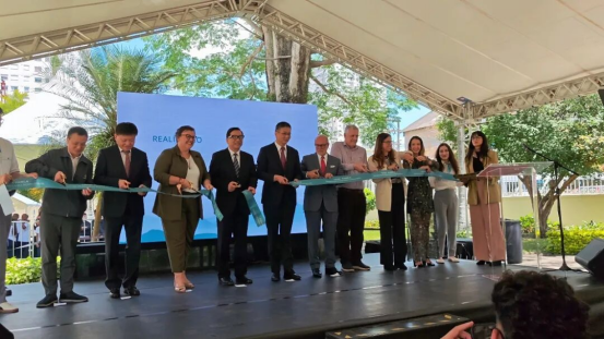 隨后,來(lái)穎杰常務(wù)副部長(zhǎng)、余鵬總領(lǐng)事、瑪麗安娜·侯林執(zhí)行廳長(zhǎng)、卡洛斯·白蘭度主席、郭慶副總編輯、亞歷山德拉·阿爾梅達(dá)館長(zhǎng)、張成名副館長(zhǎng)和卡羅琳·諾布雷加主任共同為“絲系山?!獜闹袊?guó)到巴西”展覽剪彩。中國(guó)絲綢博物館副館長(zhǎng)張成名為嘉賓和觀眾導(dǎo)覽,大家近距離感受絲綢藝術(shù)的魅力。