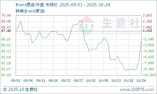 美國(guó)商業(yè)原油庫(kù)存下降,疊加市場(chǎng)對(duì)貿(mào)易爭(zhēng)端的憂慮緩和,國(guó)際油價(jià)上漲。10月23日,美國(guó)WTI原油期貨12月合約結(jié)算價(jià)報(bào)61.79美元/桶,布倫特原油期貨12月合約結(jié)算價(jià)報(bào)65.99美元/桶。