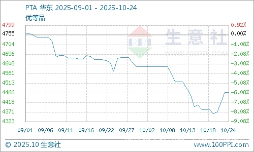 油價(jià)走強(qiáng)助推PTA價(jià)格,截止10月24日國(guó)內(nèi)華東地區(qū)PTA現(xiàn)貨價(jià)格為4468元/噸,較周初上漲2.41%。從自身供應(yīng)來(lái)看,供應(yīng)端逸盛寧波220萬(wàn)噸裝置10月17日降負(fù)至8成,逸盛新材料360萬(wàn)噸10月14日恢復(fù),行業(yè)整體開工率在75%附近。后續(xù)四川能投100萬(wàn)、英力士110萬(wàn)10月存檢修計(jì)劃,獨(dú)山能源新裝置300萬(wàn)計(jì)劃下周投產(chǎn),關(guān)注實(shí)際兌現(xiàn)情況。