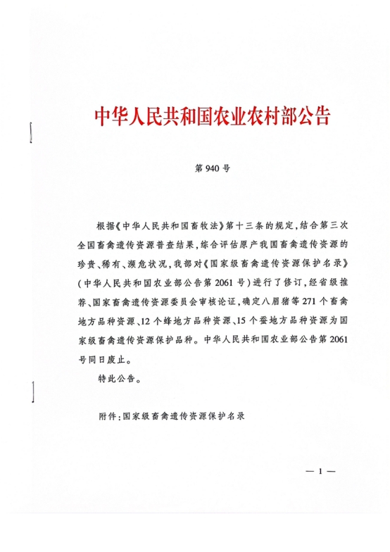 10月27日農(nóng)業(yè)農(nóng)村部發(fā)布關(guān)于《國家級畜禽遺傳資源保護(hù)名錄》修訂的公告。