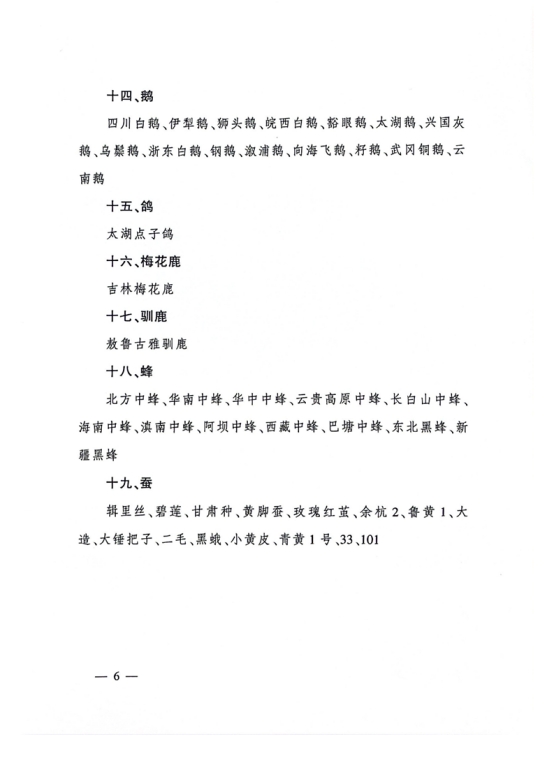 根據(jù)《中華人民共和國畜牧法》第十三條的規(guī)定,結(jié)合第三次全國畜禽遺傳資源普查結(jié)果,綜合評估原產(chǎn)我國畜禽遺傳資源的珍貴、稀有瀕危狀況,農(nóng)業(yè)農(nóng)村部對《國家級畜禽遺傳資源保護(hù)名錄》(中華人民共和國農(nóng)業(yè)部公告第2061號)進(jìn)行了修訂,經(jīng)省級推薦、國家畜禽遺傳資源委員會審核論證,確定八眉豬等271個畜禽品種、12個蜂品種、15個蠶品種為國家級畜禽遺傳資源保護(hù)品種。