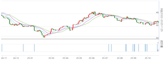 今日(2025年10月30日,周四)中國繭絲綢交易市場生絲電子指數(shù)下跌0.10%報(bào)于4696.77點(diǎn)。B絲2022D(商檢4A級生絲):251125合約下跌0.06萬元報(bào)收于46.68萬元;260325合約下跌0.03萬元報(bào)收于47.22萬元;260925合約下跌0.06萬元報(bào)收于47.22萬元。