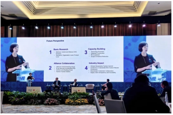 在“可持續(xù)、法規(guī)和關(guān)稅”議題環(huán)節(jié),中國(guó)紡聯(lián)副會(huì)長(zhǎng)閻巖以“可持續(xù)引領(lǐng)發(fā)展——中國(guó)紡織政策框架和協(xié)同行動(dòng)”為題,進(jìn)行了發(fā)言。在未來(lái)展望中,她呼吁,應(yīng)聚焦于四個(gè)主要方面:基礎(chǔ)研究——探索控制和減少溫室氣體排放的方法,并在組織層面和產(chǎn)品層面制定相關(guān)標(biāo)準(zhǔn);聯(lián)盟合作——通過(guò)包括參與UNFCCC FICCA工作組、實(shí)施30·60凈零加速計(jì)劃、加入CNTAC-LCA工作組以及推進(jìn)時(shí)尚森林倡議,加強(qiáng)合作與行動(dòng);能力建設(shè)——致力于技術(shù)推廣、數(shù)據(jù)庫(kù)建設(shè)、可再生能源投資以及Scope3排放的減少;行業(yè)影響——通過(guò)舉辦氣候管理時(shí)尚峰會(huì)、參與洲際紡織ESG/碳中和會(huì)議、與下游客戶(hù)合作,以及提升供應(yīng)鏈的透明度和可追溯性,來(lái)推動(dòng)整個(gè)行業(yè)的進(jìn)步與發(fā)展。