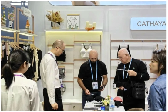客商接待方面,凱喜雅憑借優(yōu)質(zhì)的展品和專業(yè)展示,吸引了眾多來(lái)自全球各地的客商和國(guó)內(nèi)品牌商駐足洽談,新老客戶齊聚一堂,其中不乏來(lái)自東南亞、俄羅斯、“一帶一路”沿線國(guó)家及歐美地區(qū)的客戶等。