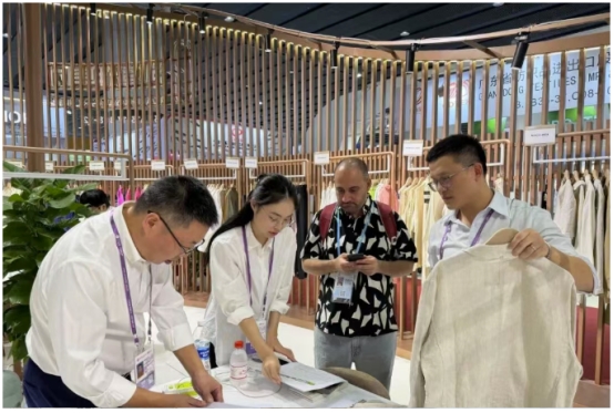 展品呈現(xiàn)上,男女裝系列除了經(jīng)典傳統(tǒng)真絲產(chǎn)品外,還推出了可機(jī)洗、挺括真絲等功能性真絲系列產(chǎn)品??蛻粼隗w驗(yàn)真絲面料手感和性能介紹后稱贊不已,高度認(rèn)可凱喜雅的產(chǎn)業(yè)鏈協(xié)同創(chuàng)新、技術(shù)研發(fā)與數(shù)字化AI應(yīng)用成果,這些正是企業(yè)鞏固和提升國(guó)際市場(chǎng)綜合競(jìng)爭(zhēng)優(yōu)勢(shì)的重要因素。