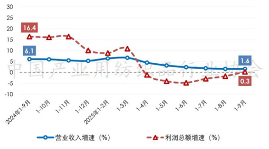 表1 2025年1-9月我國產(chǎn)業(yè)用紡織品行業(yè)主要經(jīng)濟指標情況(規(guī)模以上)