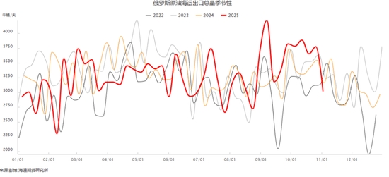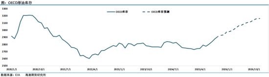 雖然西方國家加大了對俄羅斯制裁力度,俄羅斯的海運(yùn)原油最近二周時間出現(xiàn)了回落。但11月7日EIA在最新一期月報(bào)中維持全球石油庫存將在2026年全年增加的判斷,并認(rèn)為這將在未來幾個月對油價產(chǎn)生顯著的下行壓力。布倫特原油價格在2025年第四季度將降至平均每桶62美元,2026年則降至每桶52美元。