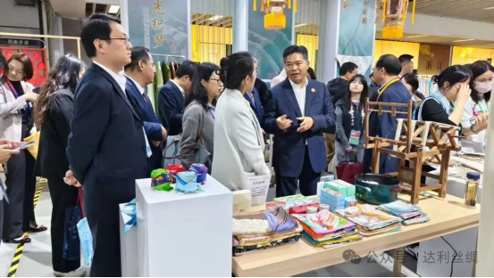 ——上海第八屆進(jìn)博會(huì),商務(wù)部黨組成員、副部長(zhǎng)盛秋平等領(lǐng)導(dǎo)蒞臨進(jìn)博會(huì)達(dá)利絲綢展區(qū);
