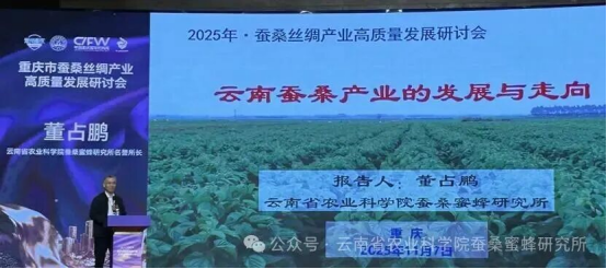 11月7日上午,考察組應(yīng)邀參加在重慶舉辦的蠶桑絲綢產(chǎn)業(yè)高質(zhì)量發(fā)展研討會(huì)。會(huì)上,董占鵬就云南省委、省政府、省政協(xié)對(duì)蠶桑繭絲綢產(chǎn)業(yè)的最新政策導(dǎo)向及產(chǎn)業(yè)發(fā)展新機(jī)遇作了交流發(fā)言。中國(guó)絲綢協(xié)會(huì)及國(guó)家蠶桑產(chǎn)業(yè)技術(shù)體系專(zhuān)家分別作了主旨報(bào)告。來(lái)自廣西、四川、云南及重慶市各鄉(xiāng)鎮(zhèn)的蠶桑產(chǎn)業(yè)負(fù)責(zé)人分別匯報(bào)了各地產(chǎn)業(yè)發(fā)展情況,并圍繞當(dāng)前問(wèn)題與未來(lái)規(guī)劃進(jìn)行了深入交流。