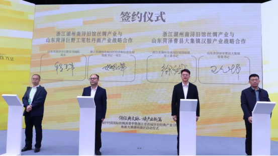 湖州南潯舊館絲綢產業(yè)與山東菏澤巨野中國工筆畫產業(yè)戰(zhàn)略合作/湖州南潯舊館絲綢產業(yè)與山東菏澤曹縣大集鎮(zhèn)漢服產業(yè)戰(zhàn)略合作簽約儀式