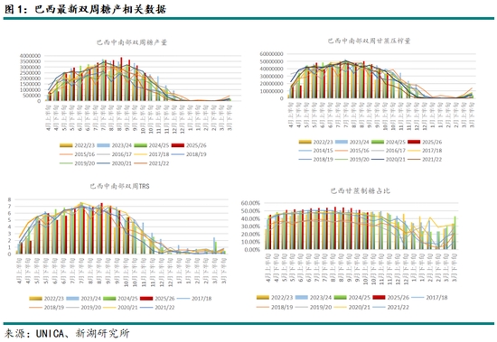 10月之后,巴西甘蔗入榨量季節(jié)性減少,疊加前期壓榨進(jìn)度加快的影響,可能導(dǎo)致2025年第四季度巴西甘蔗入榨量曲線非平滑回落。但整體來看,巴西25/26榨季初已經(jīng)簽訂的合同必須履行,套保單也需按計(jì)劃兌現(xiàn),預(yù)計(jì)最終中南部的糖產(chǎn)量仍將達(dá)到4050萬噸左右。