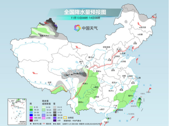 中央氣象臺預計,今天,新疆北部、內(nèi)蒙古東部、黑龍江北部、西北地區(qū)中部、川西高原北部、西藏東部等地部分地區(qū)有小到中雪或雨夾雪,其中,新疆北疆北部和北疆東部、川西高原北部等地部分地區(qū)有大到暴雪,局地大暴雪。新疆沿天山地區(qū)和伊犁河谷、西藏東南部、西北地區(qū)東南部、江南南部、西南地區(qū)東部和南部、廣東東部和東南部沿海、臺灣島等地部分地區(qū)有小到中雨,其中,臺灣島北部等地部分地區(qū)有大雨。