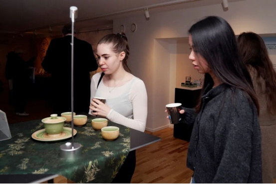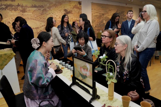 絲綢、瓷器、茶葉是絲綢之路上重要的商貿(mào)產(chǎn)品和交流見證,凝聚著千年傳統(tǒng)文化,至今在江蘇繼續(xù)著延綿傳承和創(chuàng)新發(fā)展。蘇州碧螺春、南京雨花茶作為人類非遺代表作,與陽羨雪芽、金壇雀舌、天目湖白茶等江蘇名茶共同呈現(xiàn)“茶之味”。在《金陵圖》《惠山茶會(huì)圖》《西園雅集圖》等經(jīng)典畫作營造的氛圍下,瑞典觀眾在江蘇省陶瓷藝術(shù)大師鮑玉梅的曼生壺系列紫砂壺中品味了來自江蘇的醇厚茶香。