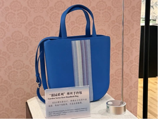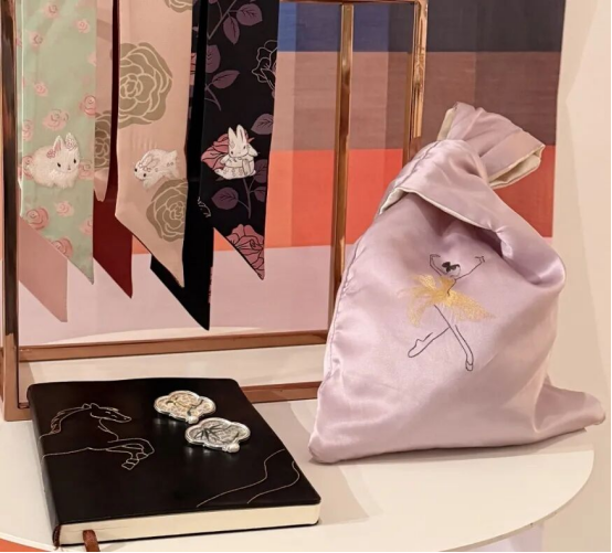 蘇州是中國蠶桑絲綢文明重要發(fā)源地之一。從草鞋山到江南蠶織重地,從蘇州織造到近代絲綢工業(yè),絲綢成為蘇州文化名片,并通過大運(yùn)河和絲綢之路,與中華和世界文明持續(xù)交流互鑒。展覽中,蘇州絲綢通過創(chuàng)意展示對世界文化的表達(dá)。太湖雪設(shè)計(jì)創(chuàng)作的以斯德哥爾摩標(biāo)志性達(dá)拉木馬為原型的蠶繭花立體木馬,成為東西方文化交融的生動(dòng)象征。上久楷與法國藝術(shù)家進(jìn)行深度合作,融合法國繪畫與宋錦面料,體現(xiàn)了織錦工藝與歐洲藝術(shù)的交織。匡吉繡在新產(chǎn)品上繡出了歐洲古典舞蹈“芭蕾”,讓蘇繡在穿針引線中翩翩起舞。