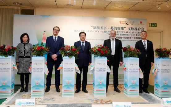 11月7日,“茶和天下?蘇韻雅集”文旅推介會(huì)暨“運(yùn)河流光?守藝新生”非遺精品展在斯德哥爾摩中國文化中心隆重啟幕。本次活動(dòng)由江蘇省文化和旅游廳、斯德哥爾摩中國文化中心主辦,蘇州市吳江區(qū)文廣旅局、蘇州絲綢博物館、南京云錦博物館、江蘇高淳陶瓷股份有限公司協(xié)辦。江蘇省人民政府副省長陳忠偉、中華人民共和國駐瑞典王國大使館教育參贊黃立瓊、瑞典國家旅游局企業(yè)聯(lián)絡(luò)主管吉姆?霍夫韋貝里、瑞典一帶一路研究所主席史蒂芬?布勞爾、斯德哥爾摩中國文化中心副主任戴衛(wèi)紅、江蘇省農(nóng)業(yè)農(nóng)村廳廳長季輝、江蘇省文化和旅游廳副廳長錢寧、江蘇省人民政府外事辦公室副主任劉建東、蘇州市人民政府副市長查穎冬出席了活動(dòng)。