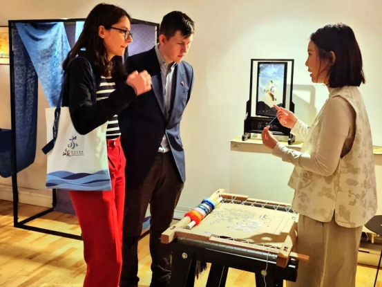 活動(dòng)中,蘇州絲綢博物館與蘇州大學(xué)藝術(shù)學(xué)院范煒焱聯(lián)合策劃的“運(yùn)河流光?守藝新生”非遺精品展精彩亮相。展覽以江蘇運(yùn)河沿線非遺為經(jīng),以絲綢之路“絲?茶?瓷”為緯,融合東方千年紋樣與色彩美學(xué),讓江蘇的江河湖海之美與綿長文脈之勝跨越山海、走向世界,在北歐大地上綻放璀璨光彩。