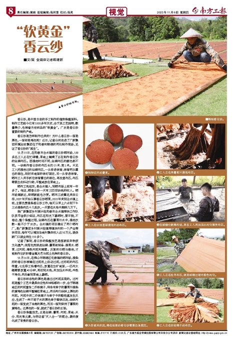 11月8日,廣東省總工會(huì)機(jī)關(guān)報(bào)《南方工報(bào)》報(bào)道絲紡集團(tuán)位于陽春和順德的兩處香云紗制作現(xiàn)場。