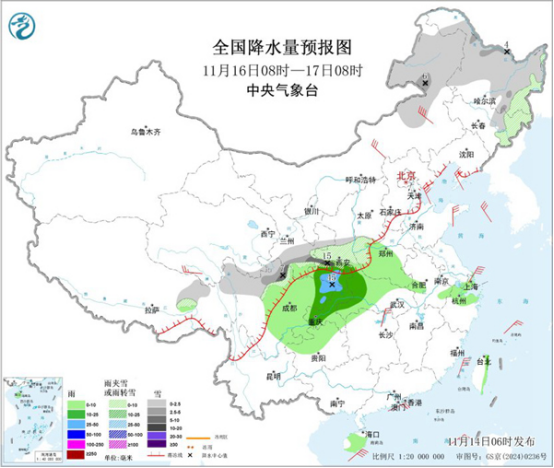 今天(11月14日)起至17日,今年下半年首場寒潮來襲,局地降溫將超12℃。降溫過后,氣溫將大范圍創(chuàng)今年下半年來新低,17日最高氣溫0℃線將南壓到陜西北部、山西北部、河北北部、遼寧北部一帶。這次寒潮過程由于暖濕氣流較弱,今起三天全國雨雪天氣總體不多,但青藏高原東部至西南地區(qū)東部一帶多陰雨雪天氣。
