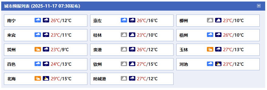 廣西氣象臺(tái)17日05時(shí)發(fā)布預(yù)報(bào):