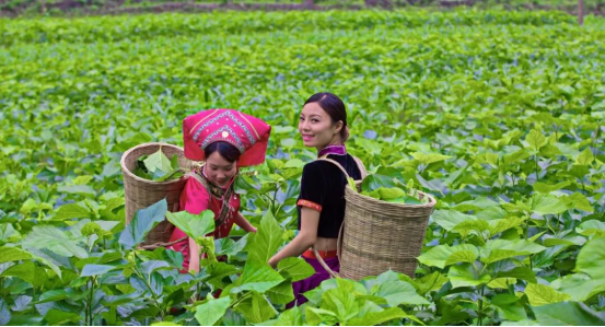 忻城縣一個桑園里,村民在采摘桑葉