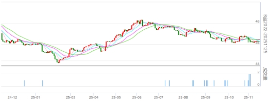 今日(2025年11月17日,周一)中國繭絲綢交易市場生絲電子指數微跌0.03%報收于4656.62點。B絲2022D(商檢4A級生絲):251125合約報平,收于46.32萬元;260325合約下跌0.12萬元報收于46.68萬元;260925合約報平,收于46.77萬元。