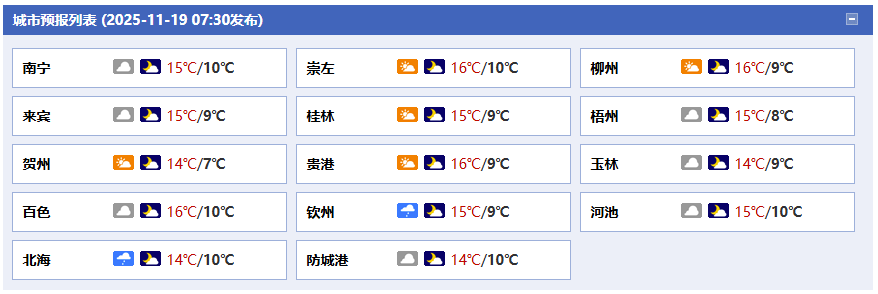 廣西氣象臺(tái)19日05時(shí)發(fā)布預(yù)報(bào):