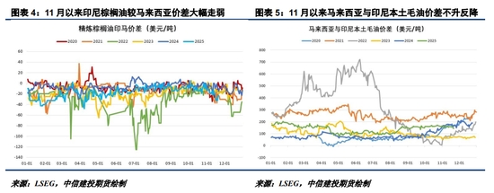 11月以來,印尼精煉棕櫚油較馬來西亞FOB價差持續(xù)走弱,印尼出口報價比馬來西亞最多便宜超過30美元/噸,導致一些連鎖反應出現(xiàn)。一方面,印棕價格優(yōu)勢令其裝運增長明顯,大幅擠占馬棕出口,導致馬棕11月階段性出口呈現(xiàn)明顯轉(zhuǎn)弱;另一方面,印尼報價偏弱也引發(fā)市場對其產(chǎn)量及庫存的擔憂,因印尼供需數(shù)據(jù)滯后且可信度存疑,市場只能更關注其價格。