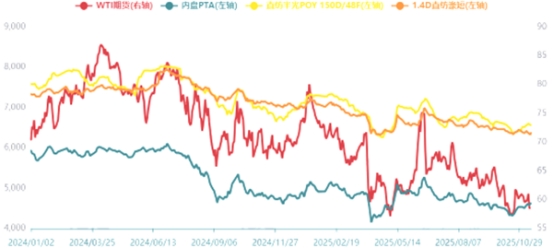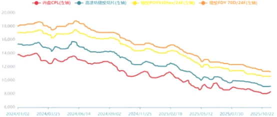 表1 2025年以來化纖主要產(chǎn)品及原料價格變化資料