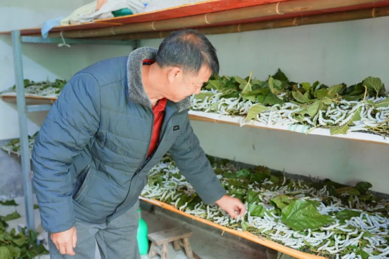 在拖姑村,像李代銀這樣的養(yǎng)蠶戶有二百多戶。作為養(yǎng)蠶示范小組,上村社除了外出務(wù)工的家庭,幾乎家家養(yǎng)蠶。其中不少是擁有三十多年經(jīng)驗(yàn)的老把式,他們技術(shù)嫻熟、勤勞肯干,也樂于助人。實(shí)實(shí)在在的效益形成了良好的示范效應(yīng),產(chǎn)業(yè)規(guī)模正持續(xù)向周邊地區(qū)輻射。
