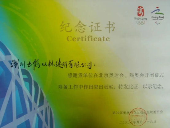 如今,雙林鎮(zhèn)仍保存著傳統(tǒng)的綾絹制造工藝。全國95%以上的博物館使用雙林綾絹。2008年,雙林綾絹織造技藝被列入了第二批國家級非物質(zhì)文化遺產(chǎn)名錄。同年,北京奧運會上,雙林綾絹被用作紀(jì)念證書裱封材料,受到國際友人的高度贊賞。