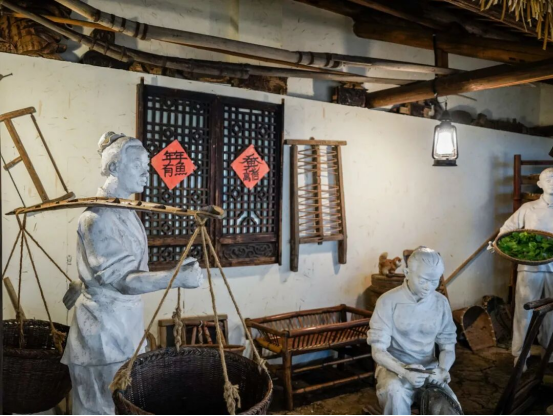 村里有一座集觀賞、體驗和教研于一體的輯里湖絲博物館。館內(nèi)設(shè)有展示區(qū)、互動區(qū),設(shè)計了絲綢、農(nóng)耕等多個主題,陳列展出的輯里湖絲、絲織工藝品、傳統(tǒng)農(nóng)作工具等物件共600多件,還有大量詳實的歷史資料和實物。