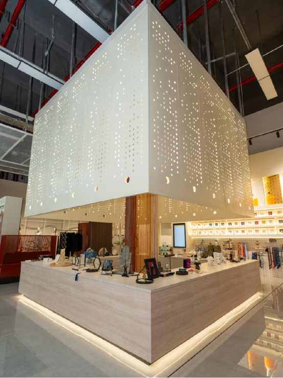 這里不僅匯聚了數(shù)百家優(yōu)質(zhì)絲綢商戶,還有與浙江理工大學(xué)攜手打造的國際絲綢時尚青創(chuàng)中心、服裝設(shè)計國家級虛擬仿真實驗教學(xué)中心與數(shù)字化藝術(shù)設(shè)計產(chǎn)教基地、湖州絲綢品種傳承保護(hù)中暨蠶桑絲織技藝研學(xué)基地等多個基地及絲綢文化館、《浙理·絲古織今》科普工作室等多個絲綢產(chǎn)業(yè)空間。