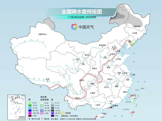 具體來(lái)看,中央氣象臺(tái)預(yù)計(jì),今天內(nèi)蒙古東北部、黑龍江東部、吉林東部等地部分地區(qū)有小雪或雨夾雪,其中,黑龍江東北部、吉林東部等地部分地區(qū)有中到大雪。山東半島東部、臺(tái)灣島等地部分地區(qū)有小雨。