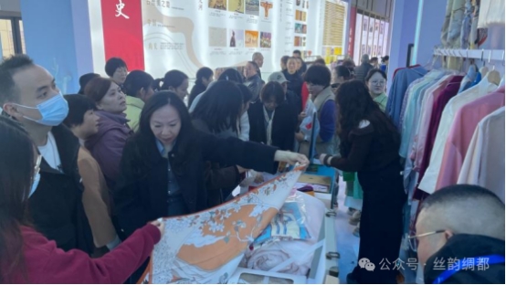 在六合服飾的展位上,絲綢家居服、真絲圍巾、領(lǐng)帶、桑蠶絲被、蠶絲棉衣、真絲床上用品件套及絲綢文創(chuàng)系列產(chǎn)品整齊陳列,柔美的質(zhì)感與雅致的設(shè)計吸引眾多觀眾駐足品鑒、咨詢選購。其中,公司首次推出的“金合”牌高端絲綢外穿服裝系列尤為搶眼,憑借創(chuàng)新設(shè)計與精湛工藝,成為全場關(guān)注的核心,不少采購商與消費者當(dāng)場表達合作意向與購買需求。