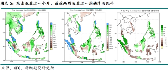產(chǎn)量: 11月通常東南亞進(jìn)入雨季。11月中上旬馬來降雨距平偏低,MPOA預(yù)估11月1-20日馬棕產(chǎn)量環(huán)比增加3.24%。歷史規(guī)律看,11月馬棕產(chǎn)量幾乎沒有過環(huán)比增加情況出現(xiàn)。11月中下旬,臺(tái)風(fēng)影響下,印尼和馬來西亞等國(guó)遭遇了持續(xù)一周多的暴雨洪水襲擊,相應(yīng)地區(qū)的降雨距平增加,11月馬棕產(chǎn)量可能環(huán)比小減。