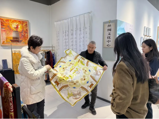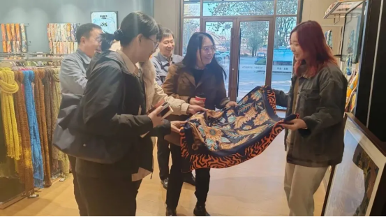 在淄博大染坊絲綢集團(tuán)有限公司,實地參觀了生產(chǎn)車間、絲綢主題文化展廳。作為全國制造業(yè)單項冠軍示范企業(yè),大染坊擁有從繅絲、織造到練染印的完整產(chǎn)業(yè)鏈,其絲綢面料織造產(chǎn)量穩(wěn)居全國首位。企業(yè)將傳統(tǒng)絲織技法融入現(xiàn)代生產(chǎn)工藝,創(chuàng)新研發(fā)的國潮國風(fēng)絲巾等系列手造產(chǎn)品,暢銷全球50多個國家地區(qū)。