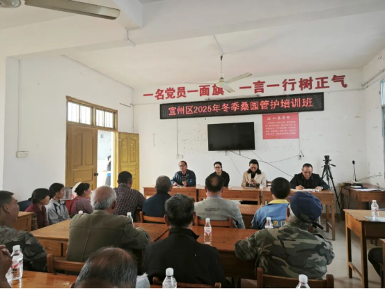 培訓采取“理論授課+物資幫扶”相結合的方式,將實用技術和農用物資送到田間地頭,切實幫助蠶農解決生產難題,為桑蠶產業(yè)高質量發(fā)展夯實基礎。培訓現(xiàn)場,桑蠶中心技術人員用通俗易懂的語言,為農戶講解桑園冬季管護、病蟲害綠色防控等關鍵技術,詳細解析家蠶常見病害的識別診斷與綜合防治方法,并反復強調“預防為主、防治結合”的科學養(yǎng)殖理念。農戶們認真翻閱技術手冊,邊聽邊記,積極提問,技術人員一一耐心解答,現(xiàn)場學習氣氛熱烈。