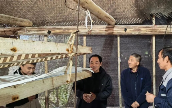 在養(yǎng)蠶戶柏昌林的蠶房內(nèi),專家團(tuán)隊仔細(xì)查看蠶匾擺放、消毒設(shè)施及溫濕度控制等環(huán)節(jié),就日常養(yǎng)殖技術(shù)要點與農(nóng)戶深入交流。蠶房外空地上,專家針對小蠶共育溫度調(diào)控、桑葉采摘時機等共性問題現(xiàn)場答疑,建議農(nóng)戶采摘時避開午間及高溫時段,實行早晚采收,令養(yǎng)殖戶受益匪淺。