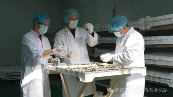 技術(shù)人員觀察蠶兒發(fā)育狀況