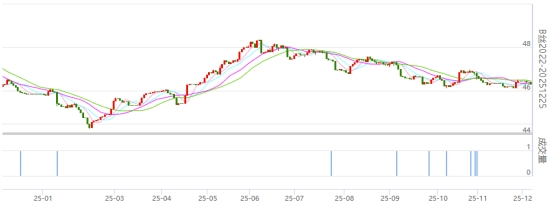 今日(2025年12月05日,周五)中國繭絲綢交易市場生絲電子指數(shù)下跌0.16%報(bào)收于4632.38點(diǎn),本周生絲指數(shù)累計(jì)下跌0.29%。B絲2022D(商檢4A級生絲):251225合約下跌0.06萬元報(bào)收于46.32萬元;260325合約下跌0.18萬元報(bào)收于46.29萬元;260925合約報(bào)平,收于46.29萬元。