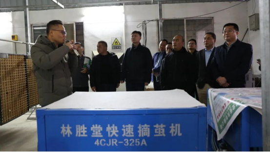 12月5日中午,為提升鄉(xiāng)鎮(zhèn)黨政正職推動產(chǎn)業(yè)高質(zhì)量發(fā)展的實(shí)踐能力,中共河池市委組織部舉辦的全市鄉(xiāng)鎮(zhèn)黨政正職推動支柱產(chǎn)業(yè)高質(zhì)量發(fā)展能力提升專題培訓(xùn)班全體學(xué)員,蒞臨我公司——廣西河池市林勝堂蠶具有限公司進(jìn)行現(xiàn)場觀摩學(xué)習(xí)。我公司黃總經(jīng)理對他們的到來表示熱烈歡迎,并為此次活動進(jìn)行講解。