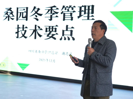 授課內(nèi)容緊密結(jié)合涼山州蠶業(yè)生產(chǎn)實際,聚焦桑園冬季管理這一關(guān)鍵環(huán)節(jié),從封園治蟲、清樹清園、剪伐刷干等基礎(chǔ)管理措施,到冬耕施肥、補植嫁接等提質(zhì)增效技巧,再到清理溝渠、桑園間作及桑枝處理等綜合利用方法,進(jìn)行了系統(tǒng)全面的講解,為參會人員送上了一份“技術(shù)干貨”。